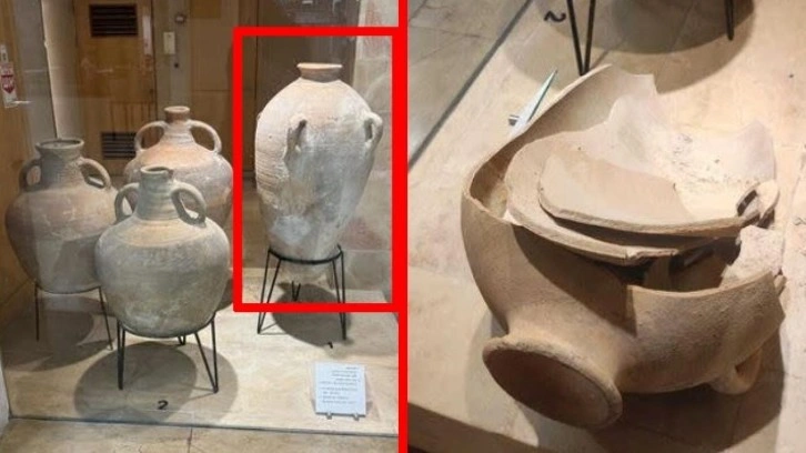 M.Ö. 2200 ila 1500 yılları arasında Bronz Çağı'ndan kaldığı düşünülen tarihi çömlek, müze girişinin yakınında koruyucu cam olmadan sergileniyordu.