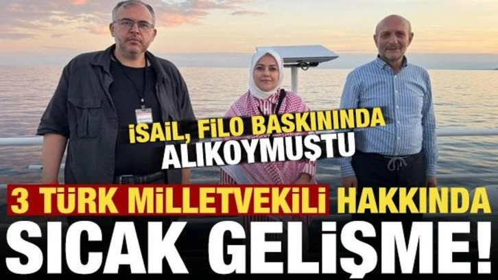 Son dakika haberi... İsrail'in yasa dışı şekilde el koyduğu Özgürlük Filosu Koalisyonu'nda yer alan 3 Türk milletvekilinin bugün Türkiye'ye dönme ihtimali bulunuyor.