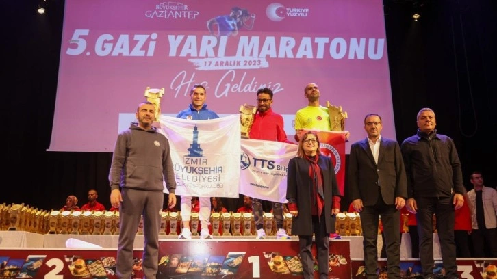 Büyükşehir Belediyesi’nin, Türkiye Atletizm Federasyonu ortaklığı, Gaziantep Valiliği koordinasyonunda bu yıl 5’nci kez düzenlediği 21 Kilometre Gazi Yarı Maratonu ve 10 Kilometre Yol Koşusu’nda derece alan atletlere kupaları ve ödül çekleri Onat Kutlar Sahnesi’nde yapılan törenle takdim edildi. Soluksuz geçen mücadelenin ardından 48 kategoride 144 kişi ödüllendirildi. 21K genel klasmanda kadın ve erkek birincilere 18 bin TL ödül verilirken, ikinciler 16 bin TL, üçüncüler ise 14 bin TL ödül kazandı. Öte yandan 21K koşusunda 27’nci olan Ali Şimşek’e ise tatlı ödülü verildi. Ödül alan yarışmacıların yer aldığı takımlarda ise sıralama şu şekilde oldu: Erkek Takımlarda birinci TSK Spor, ikinci Beykoz Belediye Spor Kulübü, üçüncü İstanbul Atletizm Kulübü; kadınlar takım sıralamasında ise birinci Bursa Maraton, ikinci Akkuyurungiris, üçüncü Gaziantep Atletizm Kulübü.
