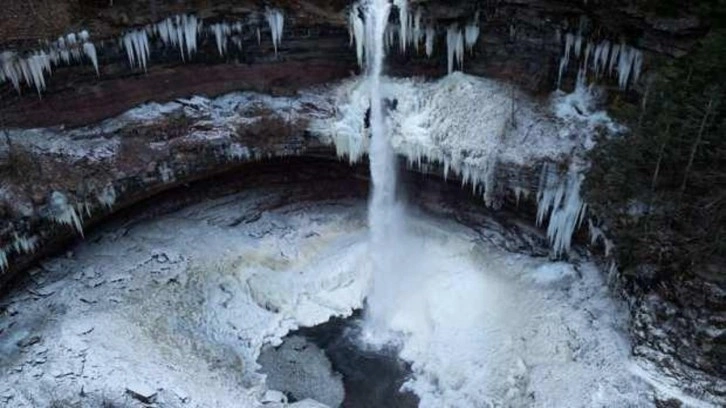ABD'nin New York Eyaleti'deki Catskill bölgesinde aşırı soğuk hava nedeniyle eyaletin en yüksek şelalelerden biri olan Kaaterskill Şelalesi dondu.