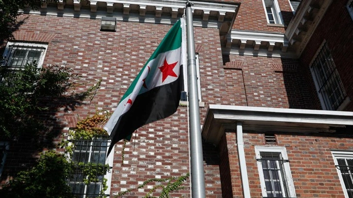Washington'da 18 Mart 2014'te kapatılan büyükelçilik binasında, Dışişleri Bakanı Esad Hasan Şeybani, Suriye Arap Cumhuriyeti bayrağını göndere çekti.