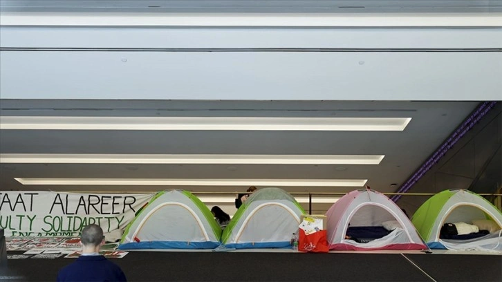 Üniversitede 3 Mayıs'ta Filistin destekçisi 40'tan fazla öğrencinin gözaltına alınıp okuldan uzaklaştırılmasına tepki gösteren akademik personel, Filistin'e destek kampı kurdu.