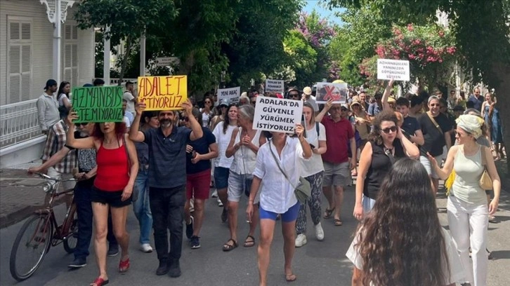 "Adalar'da güvenle yürümek istiyoruz" ve "Yeni araç istemiyoruz" pankartları taşıyan gruptakiler, slogan attı.