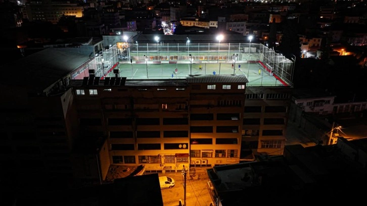 Binanın alt katlarındaki otoparktan araçla ulaşım imkanı bulunan halı saha, yıllardır manzaralı ve serin havada maç yapmak isteyenlerin adresi oluyor.