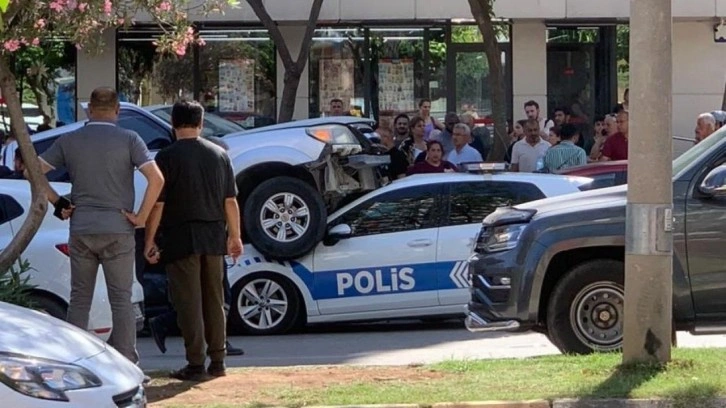 Turgut Özal Bulvarı'nda seyir halindeki bir pikap, kontrolden çıkarak karşı yöne geçip park halinde bulunan 1'i polis aracı olmak üzere 2 araca çarparak durabildi.