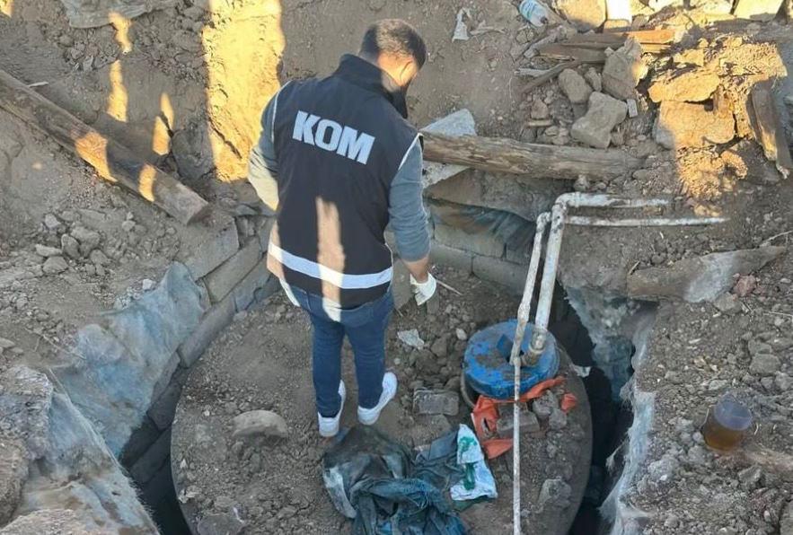 Yürütülen çalışmalar kapsamında, bir iş yerinin bahçesinde durumdan şüphelenen ekipler, yerin altına gömülmüş bir fiber tank tespit etti. Bölgeye çağrılan iş makinesiyle yapılan kazı çalışması sonucunda gizlenmiş depoya ulaşıldı.