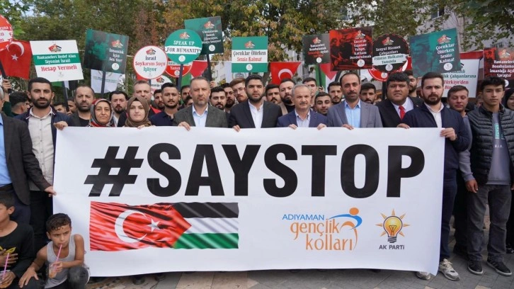 Bugün burada Gazze’den günlerdir yükselen acı feryatlara, akan onca masum kana, dökülen göz yaşlarına seyirci kalamayan; mazlum ve masum coğrafyalar için her fırsatta hakkı ve hakikati haykıran AK PARTİ Gençlik Kolları Başkanlığı olarak #SayStop demek üzere toplanmış bulunmaktayız.
