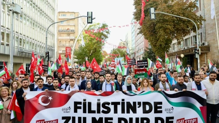 AK Parti Ankara İl Gençlik Kolları Başkanlığı tarafından eli kanlı katil İsrail devleti tarafından yaşanan soykırıma karşı Filistinli Müslümanlara destek yürüyüşü düzenlendi.