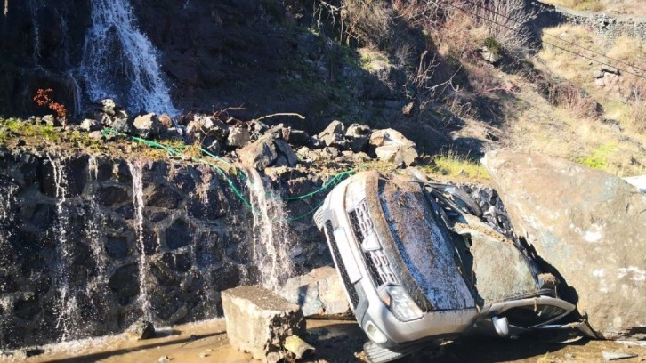 Artvin’in Murgul ilçesinde yamaçta meydana gelen heyelan nedeniyle kopan kaya, AK Parti İlçe Başkanı Recep Levent Gülsuyu’nun park halindeki cipinin üzerine düştü. Aracından indikten duyduğu gürültüyle olayı fark eden Gülsuyu, “Bir evrak alıp aracıma dönecektim. 40 saniye ile ölümden döndük” dedi.
