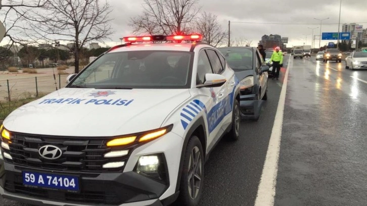 Sürücüyü fark eden trafik polisi otomobilin peşine düştü. Çevre yolu Yeni Sanayi mevkiinde trafik polisi tarafından durdurulmak istenen otomobil, polis otosuna çarptı.