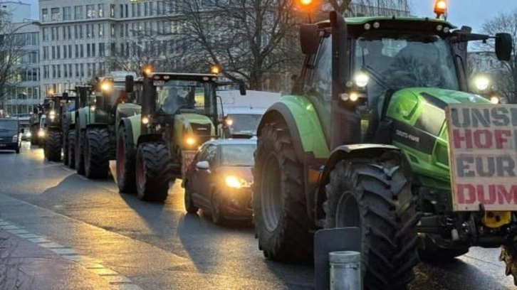 Almanya'nın çeşitli bölgelerinden traktörleriyle Berlin'e gelen çiftçiler, tarihi Brandenburg Kapısı ile Zafer Anıtı arasındaki 17 Haziran Caddesi ile çevredeki cadde ve sokakları kapattı.