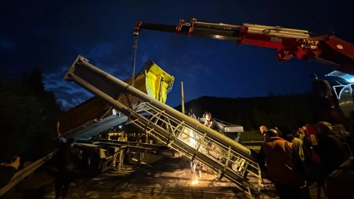 Kaza nedeniyle otoyolun Ankara yönü ulaşıma kapatıldı. Ekiplerin, damperi ve yola düşen tabelayı kaldırma çalışması sürüyor.