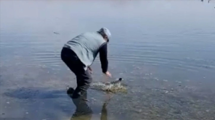 Aynalı sazan için olta atan balıkçılardan birinin iğnesine, halk arasında "sakar kuş" olarak da bilinen sakar meke takıldı.