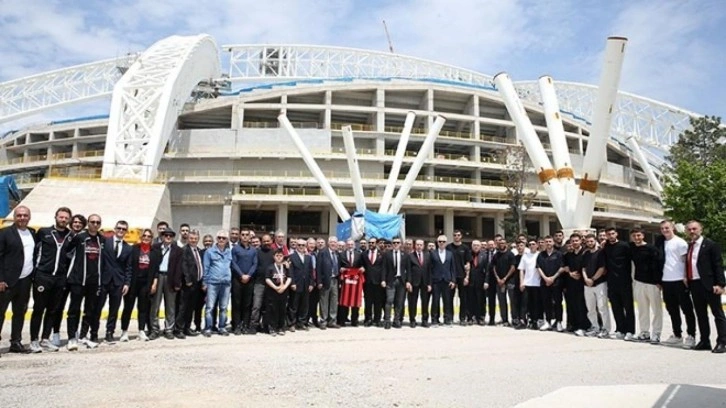 Modern mimarisiyle dikkat çeken ve futbol topu görünümünde tasarlanan 45 bin kişilik kapasiteli stadyumu gezen Başkan Sungur ve beraberindeki heyet, yetkililerden çalışmalar hakkında bilgi aldıktan sonra stadyum inşaatı önünde toplu olarak hatıra fotoğrafı çektirdi.