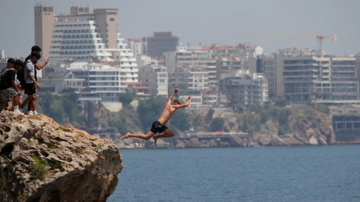 Antalya'nın dünyaca ünlü Konyaaltı Sahili'nde havaların ısınması ile birlikte özellikle hafta sonları yoğunluk yaşanıyor. Konyaaltı Sahili'nden yaklaşık 30 metrelik falezler manzarasıyla görenleri büyülerken adrenalin tutkunu gençlerin tehlikeli eğlencesine de sahne oluyor.