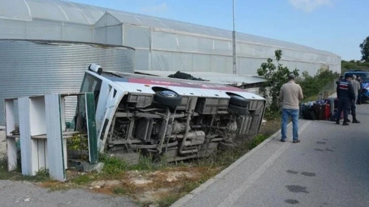 Manavgat'taki otellere turist taşıyan Fatih Karataş yönetimindeki 07 AVN 799 plakalı tur midibüsü, saat 08.00 sıralarında Gündoğdu Mahallesi'nde sürücünün hakimiyeti kaybetmesiyle yoldan çıktı.
