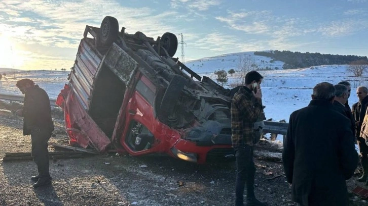 Çarpışmanın etkisiyle devrilen kamyonetin sürücüsü L.Y. ile kamyonetteki O.Y. ve M.Y. yaralandı.