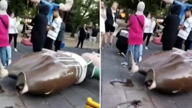 Bir süre sonra salıncak ve bağlı olduğu maketler yerinden ayrılarak devrildi.