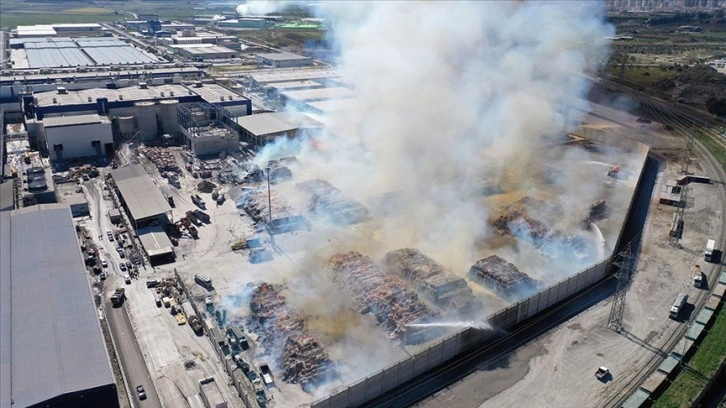 Aydın'da kağıt fabrikasının depolama alanında çıkan yangına müdahale ediliyor