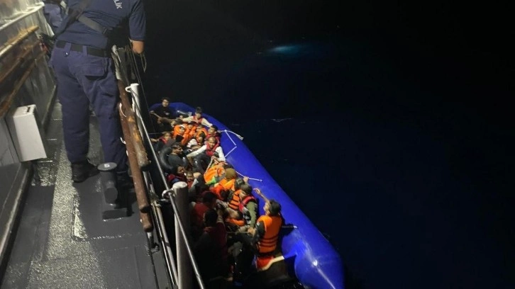 Bunun üzerine görevlendirilen Sahil Güvenlik Gemisi (TCSG-84) ve Sahil Güvenlik Botu (KB-4510) tarafından hareketli lastik bot durduruldu ve içerisindeki 14’ü çocuk 32 düzensiz göçmen yakalandı.