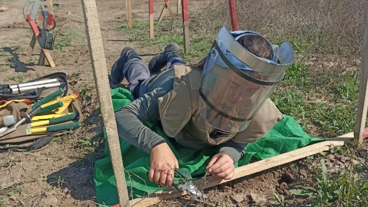 Azerbaycan Cumhurbaşkanı Yardımcısı Hikmet Hacıyev, Azerbaycanlı kadınların bölgelerini güvenli hale getirmek amacıyla kara mayını temizliği yaptığı görüntüleri paylaştı.