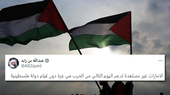 BAE Dışişleri Bakanı Nahyan, X sosyal medya hesabından yaptığı paylaşımdı, "BAE, bir Filistin devleti kurulmadan Gazze'deki savaşın ertesi gününü desteklemeye hazır değil." ifadelerine yer verdi.