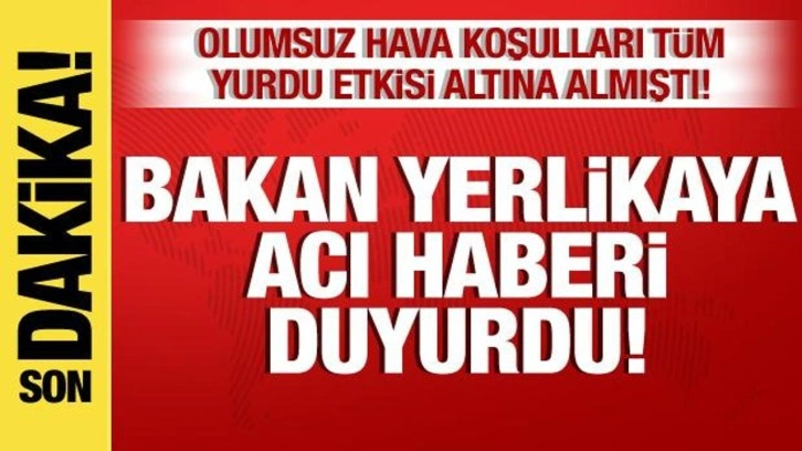 Son dakika Ali Yerlikaya haberleri: İçişleri Bakanı Ali Yerlikaya, yurdun büyük bir bölümünde etkili olan olumsuz hava koşulları sonucunda 2 vatandaşın hayatını kaybettiğini, 50 vatandaşın da yaralandığını açıkladı.