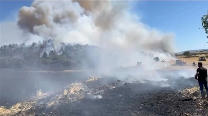 Balıkesir'in Bigadiç ilçesine bağlı kırsal Çağış Mahallesi yakınındaki anızda henüz bilinmeyen nedenle yangın çıktı.