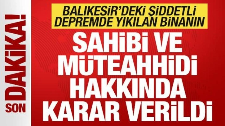 Bina sahibi İ.E.K. çıkarıldığı hakimlikçe tutuklanırken, müteahhit S.S. ise konutu terk etmeme tedbiri uygulanarak serbest bırakıldı.
