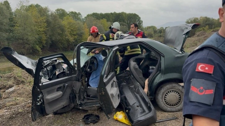 Otomobilde sıkışan sürücü ile eşi Sevil Ü. (63) itfaiye ekiplerince bulundukları yerden çıkarıldı.