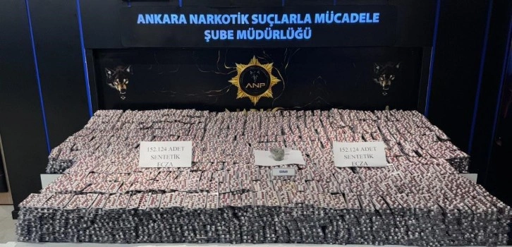 Ankara’nın Mamak ilçesinde belirlenen 3 ayrı ikamete düzenlenen eş zamanlı operasyonlarda 5 kişi gözaltına alındı. Ankara Emniyet Müdürlüğü Narkotik Suçlarla Mücadele Şube Müdürlüğü ekiplerinin NARKOGÜÇ operasyonları kapsamında narkotik arama köpeği beraberinde yapılan aramalar neticesinde, 152 bin 124 adet sentetik ecza, 46 gram esrar maddesi ele geçirildi.