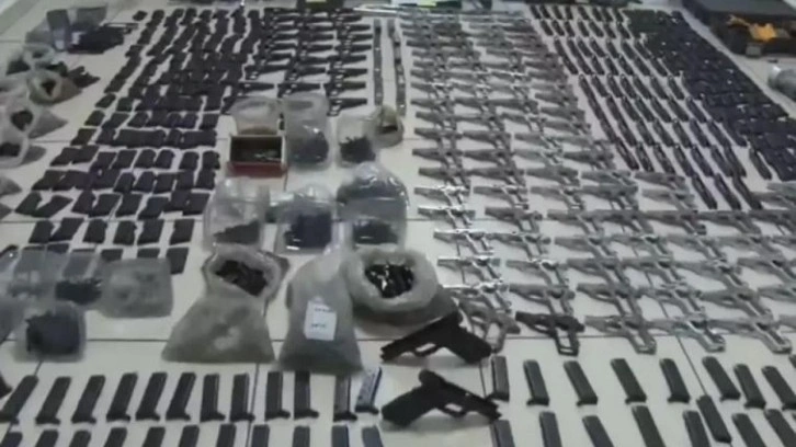 21 adet ruhsatsız tabanca, 155 adet gövde, 100 adet üst kapak, 116 adet namlu, 167 adet şarjör, 230 adet kabza kapağı, Model basımı yapan lazer makinesi, Freze makinesi, Zımpara makinesi, Kaynak makinesi, Lehim makinesi, Spiral makinesi, Silah sürgüsü taşlama makinesi, Silah boyama küveti ile Silah yapımında kullanılan muhtelif malzemeler ele geçirildi.