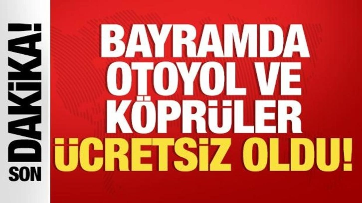 Bu gece yarısından çarşamba günü saat 07.00'a kadar köprü ve otoyollar ücretsiz oldu. Bayram süresince Marmaray, Başkentray, İzban, Gayrettepe-Havalimanı metrosu da ücretsiz olarak hizmet verecek. Kararlar Resmi Gazete'de yayımlandı.