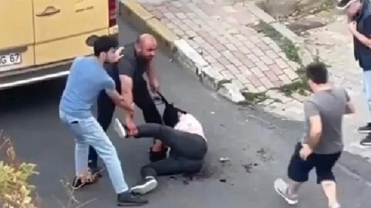 Çevredekilerin ise "Allah aşkına bırak, yapma. Yardım etsenize, adam ölüyor. Nefessiz kaldı." diye bağırdıkları duyuluyor.