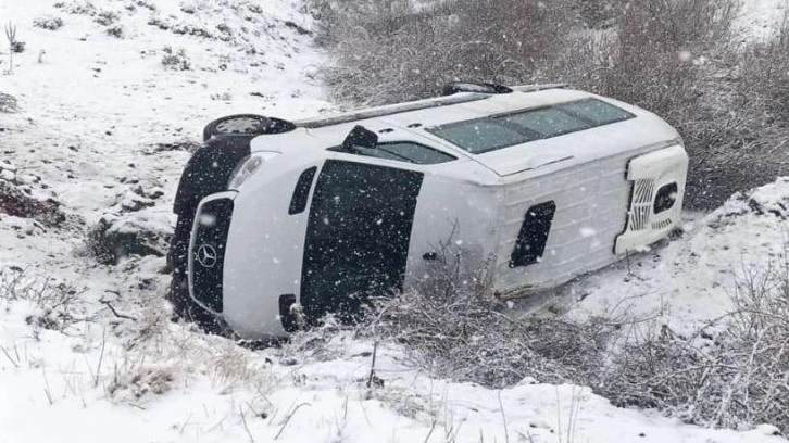 Sürücüsünün kimliği ve plakası henüz öğrenilemeyen, bir şirkete ait minibüs, yoğun kar yağışının etkili olduğu Bingöl-Diyarbakır kara yolunun Şehitköy mevkisinde şarampole devrildi.