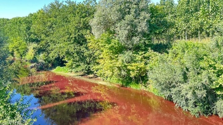 Mudurnu Çayı, Bedilkazancı ve Bedilkadirbey mahallelerinden geçen bölümünde su kırmızı renge büründü.