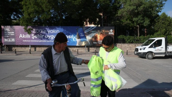 Konya Büyükşehir Belediyesi 3 Haziran sabah erken saatlerde bisikletle işe ve okula gidenlere Eski Garaj civarında reflektörlü yelek dağıttı. Sürücülerin trafikte daha görünür olmasını sağlayan bu yelekler, güvenli bisiklet sürüşü için önemli bir adım olarak değerlendirildi.