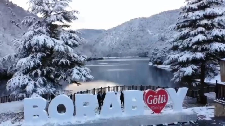 Boraboy Gölü Tabiat Parkı’nı çevreleyen ağaçlar, göl etrafındaki yürüyüş yolları ve iskeleler karla kaplandı.