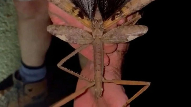 Boyu 20 santim! Et yiyen dev çekirge görenleri şaşkına çevirdi