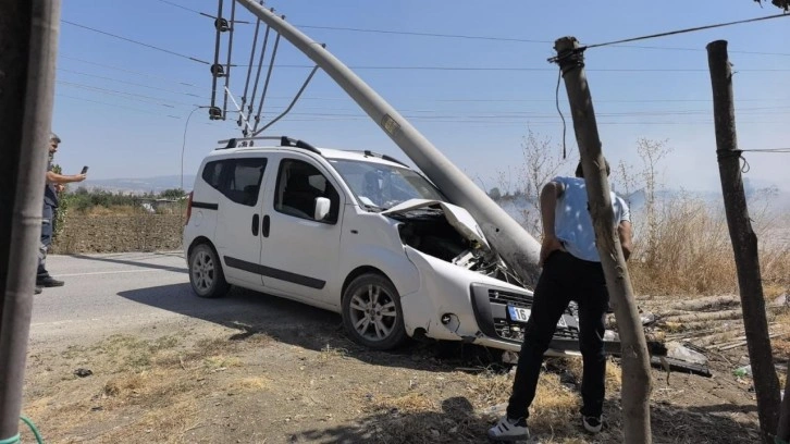 Bursa'nın İnegöl ilçesinde kontrolden çıkan kamyonet, enerji nakil hattı beton direğine çarparak durabildi. Kazada sürücü ağır yaralanırken, elektrik tellerinden çıkan akım yangına neden oldu.