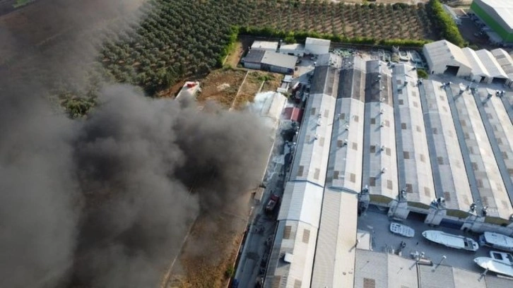 Bursa'nın Orhangazi ilçesinde yat üretim fabrikasının deposunda çıkan yangına müdahale ediliyor.