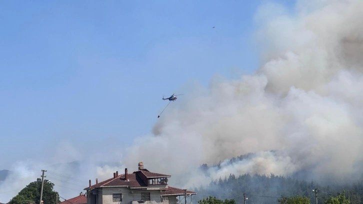 Bursa'nın Orhaneli ilçesinde anızda başlayıp daha sonra ormanlık alana sıçrayan yangına, havadan ve karadan müdahale sürüyor.