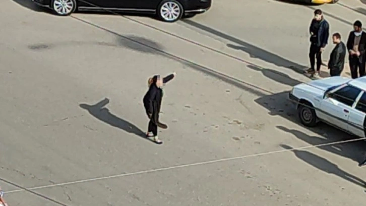 Şanlıurfa’nın Haliliye ilçesindeki Atatürk Bulvarı üzerinde elinde satır olan bir kadın, yolu kesip bağırmaya başladı.