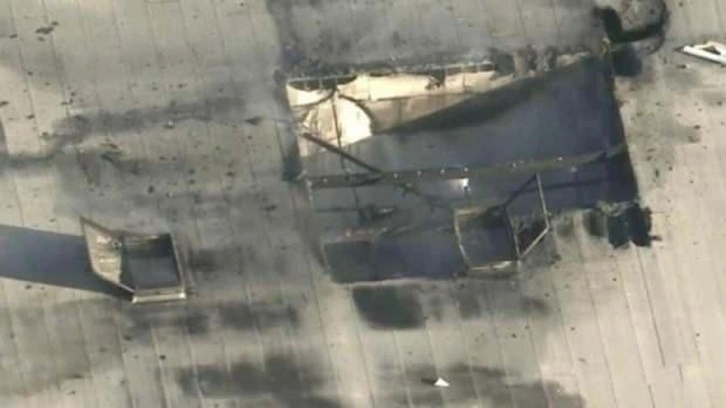 Havadan çekilen görüntüler, uçağın parçalarının binanın içinde bulunduğunu gösteriyor. Kazanın ardından çıkan yangının itfaiye ekiplerince söndürüldüğü bildirildi.