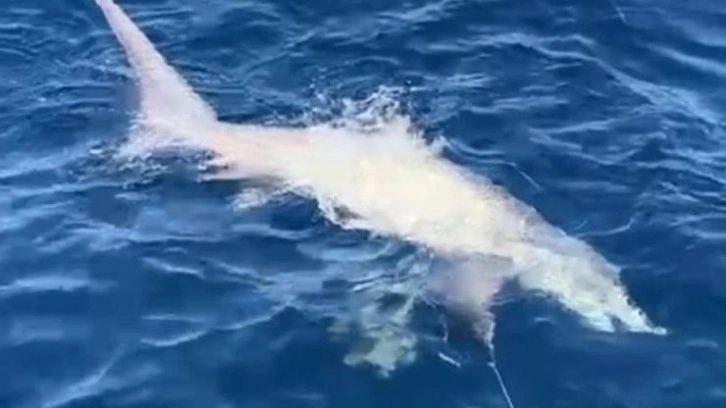 Gökçeada'da balıkçılık yapan İlker Özdemir, bir hafta önce balık avlamak için teknesiyle denize açıldı. Parakete takımlarını denize bırakan Özdemir ve arkadaşları, bir süre sonra takımları toplamaya başladı. Parakete takımını çeken Özdemir, denizde dev bir balık olduğunu gördü. Yüzeye yaklaşan balığın yaklaşık 6 metre uzunluğunda sapan köpek balığı olduğunu fark eden balıkçılar, şaşkınlık yaşadı. Özdemir ve arkadaşları daha sonra balığı oltadan kurtararak tekrar doğal ortamına bıraktı.