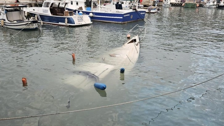 Almanya bayraklı 8 metre uzunluğundaki tekne, kuvvetli rüzgar nedeniyle yan yattıktan sonra tamamen battı.