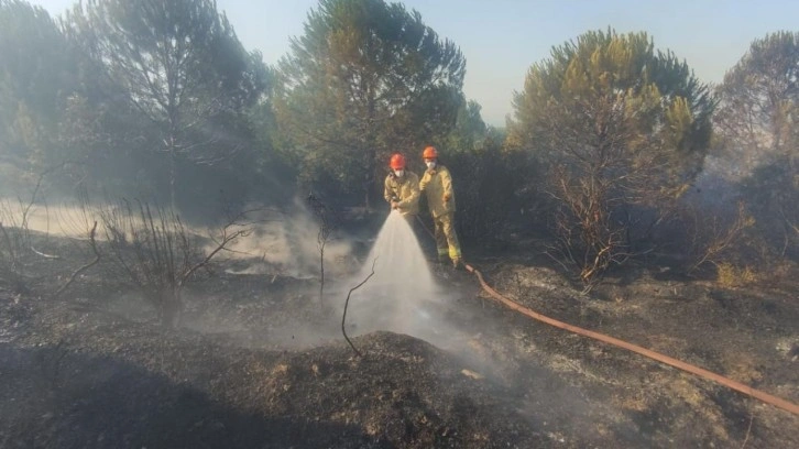 Çanakkale'nin Biga ilçesine bağlı Ayıtrede ve Bekirli köyleri arasındaki ormanlık alanda henüz belirlenemeyen nedenle yangın çıktı.
