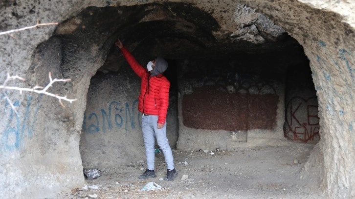 Roma’nın son dönemlerinden itibaren kullanıldığı tahmin edilen kaya mezarlarının define arayan şahıslar ve sprey boyayla duvarlarının boyanarak tahribata uğratılması ise görenleri şaşırtıyor. Kaya mezarlarının dış cephesinin ve içerisinde bulunan odaların duvarlarının sprey boyalar ile tahribata uğratılmış durumda olduğunu gören vatandaşlar, tepki gösteriyor. Kaya mezarlarındaki tüm odaların duvarlarında sprey boyayla yazılmış yazıların olduğu ve zemini ile duvarlarının defineciler tarafından kazıldığı görüldü.