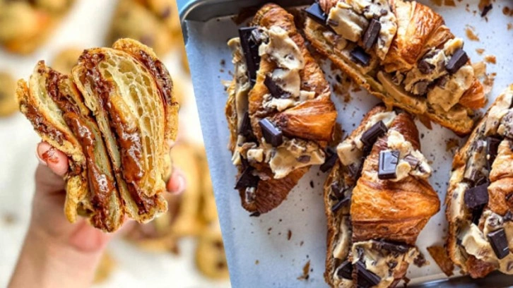 Kurabiyeli kruvasan, sosyal medya üzerinde son zamanlarda viral hale gelerek birçok kullanıcı tarafından denenen ve tadıyla mest eden bir tatlı tarifidir. Sadece iki malzeme ile çay demlenene kadar hazır olan bu tarif, tereyağlı kruvasanın içerisini çikolatalı kurabiye hamuru doldurarak fırında pişirilmesiyle yapılır.