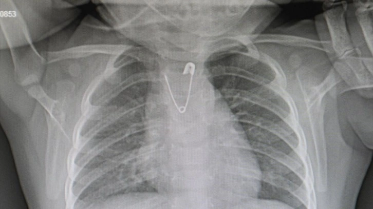 Ankara'da yakasına takılı olan çengelli iğneyi ucu açık şekilde yutan 10 aylık küçük kız, Ankara Eğitim ve Araştırma Hastanesine getirildi. Çengelli iğnenin alındığı operasyon sonrası Ankara Eğitim ve Araştırma Hastanesi Çocuk Cerrahisi Uzmanı Doç. Dr. Doğuş Çalışkan, ebeveynlere uyarılarda bulundu.